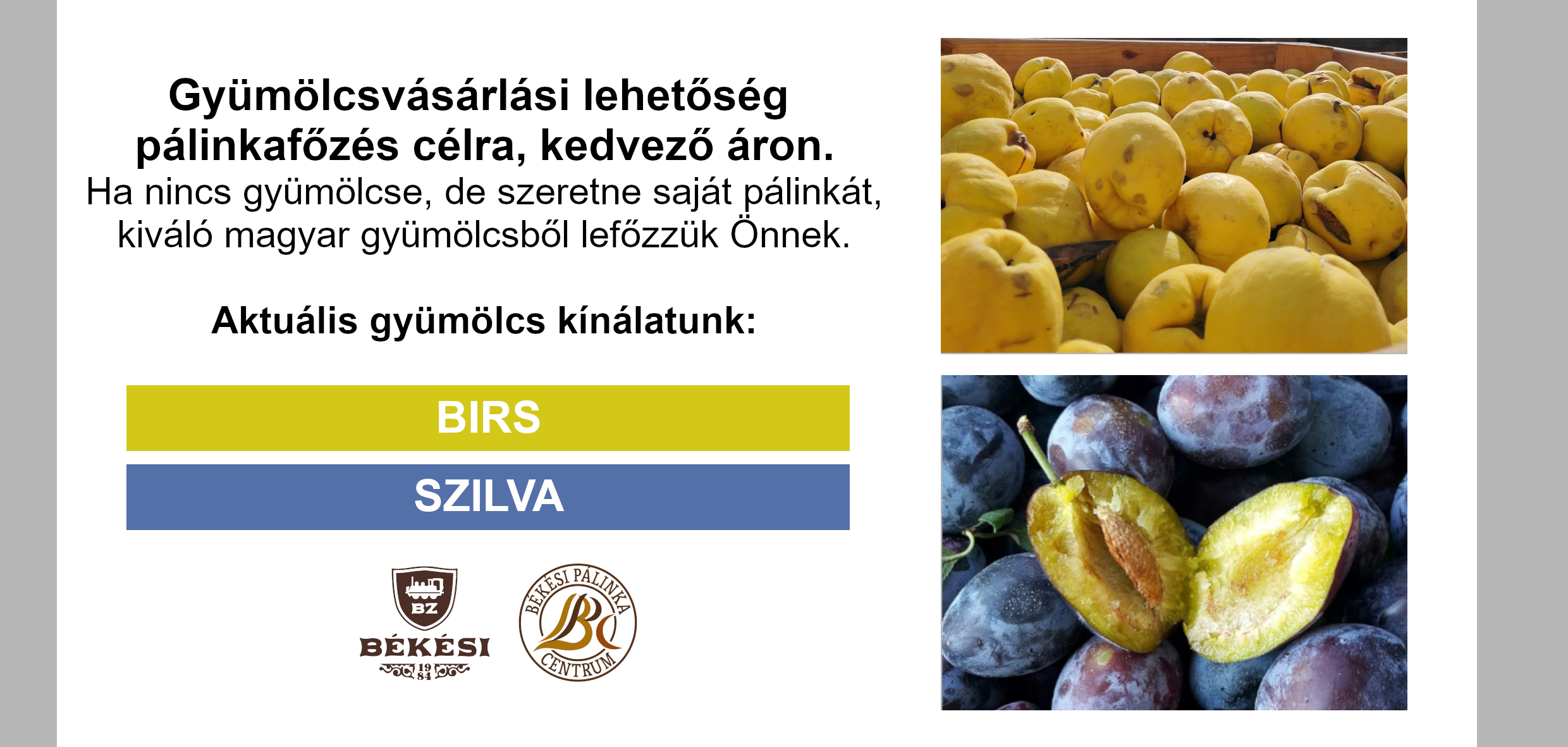 Birs, szilva gyümölcsvásárlási lehetőség pálinkafőzés célra.